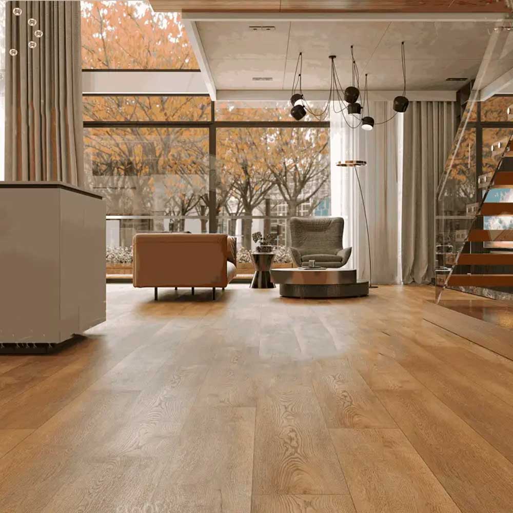 - Благодаря своей прочной структуре ламинат устойчив к царапинам, вмятинам и другим повреждениям, что особенно важно для помещений с высокой проходимостью, обладает хорошими теплоизоляционными свойствами (не такой холодный, как плитка) и снижает уровень шума при ходьбе