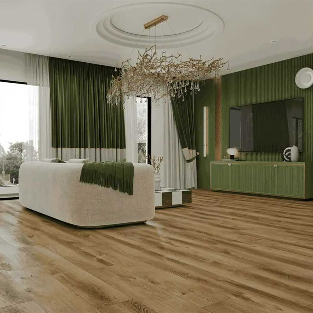 • Благодаря своей прочной структуре ламинат устойчив к царапинам, вмятинам и другим повреждениям, что особенно важно для помещений с высокой проходимостью, обладает хорошими теплоизоляционными свойствами (не такой холодный, как плитка) и снижает уровень шума при ходьбе