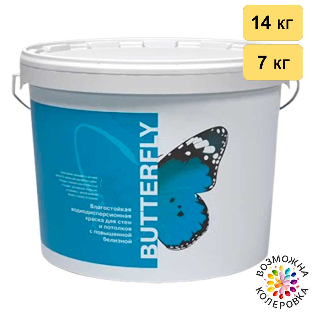Белая интерьерная влагостойкая краска с шелковисто-матовым эффектом Derufa Butterfly, предназначена для окрашивания стен и потолков в жилых и коммерческих помещениях с нормальной и повышенной влажностью.