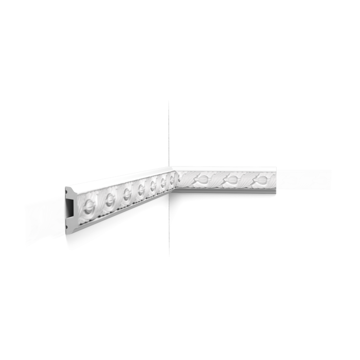 Настенный молдинг с листьями аканта и миндалем. Этот профиль может стать яркой деталью как в классическом, так и в современном интерьере. Комбинируйте с моделью P101A. Выполнен из материала Purotouch – формованный высококачественный полиуретан высокой плотности.